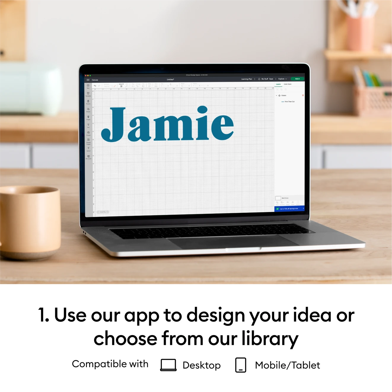 قم بتحميل وقطع تصميماتك الخاصة أو اختر من مكتبة Cricut Design Space