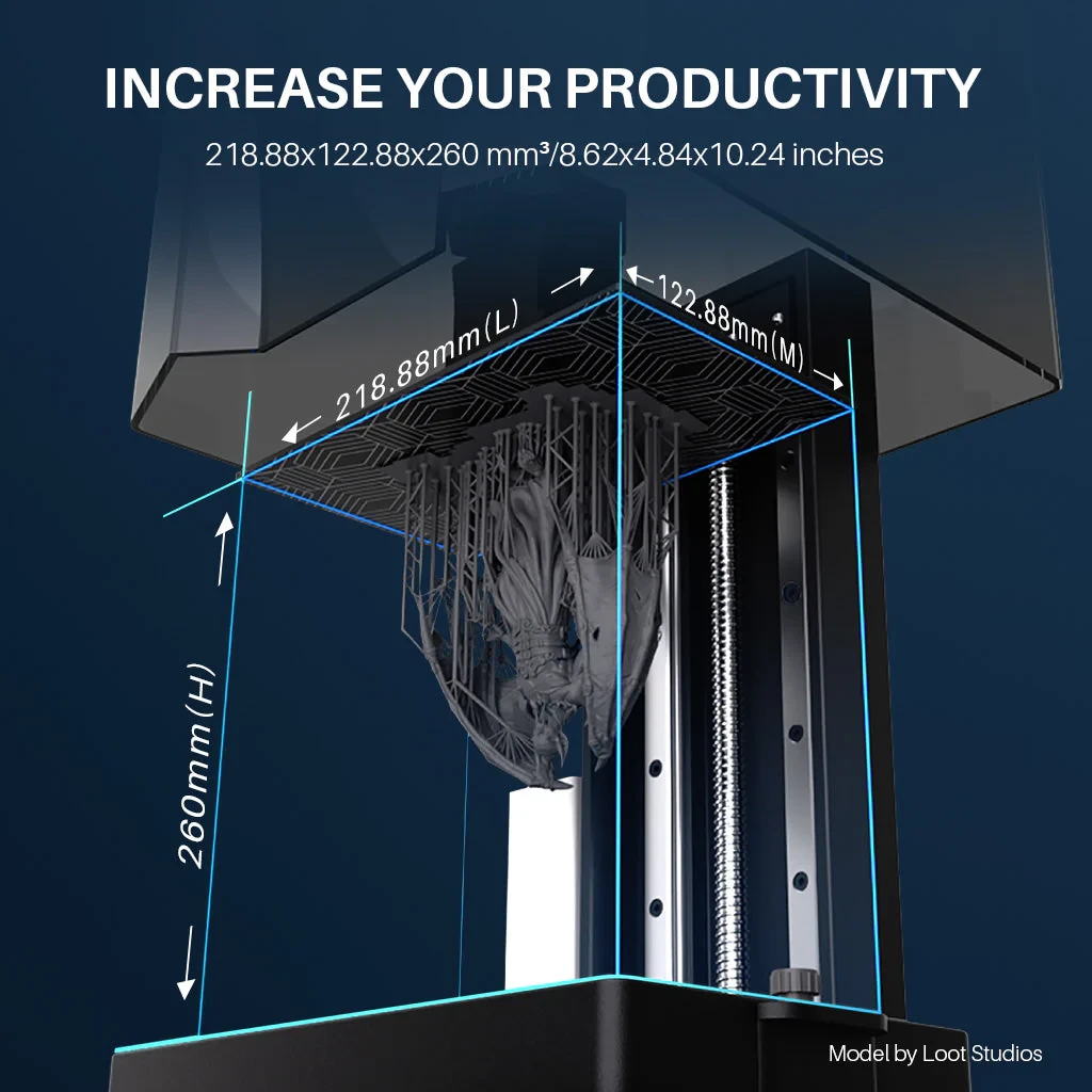 The printer uses a COB + refractive light source, which reduces light dispersion and provides uniform and consistent light distribution, resulting in high-quality prints with a smooth surface and dimensional accuracy.