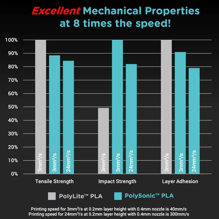 PolySonic™ PLA is a revolutionary high-speed 3D printing filament, the ultimate game-changer in additive manufacturing. With its lightning-fast extrusion rate, cutting-edge precision, and exceptional layer adhesion you can ramp up the speed of your 3D printer and witness new levels of productivity. Accelerate your workflow without compromising on strength or quality.
